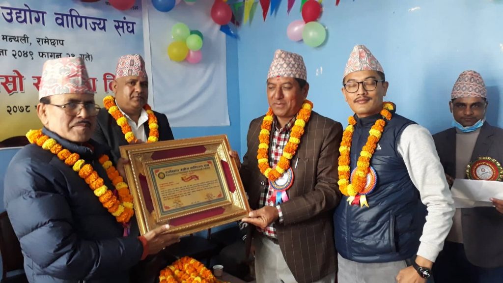 कार्यक्रमको प्रमुख अतिथिका रुपमा रहनु भएका मन्थली नगरपालिकाका नगरप्रमुख रमेश कुमार वस्नेतले संघकोतर्फ बाट कदर पत्र प्रदान गर्नुभएको थियो । यस्तै, कर्मचारीतर्पm संघको लेखा प्रशासन सहायक सङ्गिता श्रेष्ठ सम्मानित हुनु भएको छ । उहाँलाई कदर पत्र र नगदसहित सम्मान गरिएको हो । कार्यक्रमको अध्यक्षता रोमछाप उद्योग वाणिज्य संघका अध्यक्ष केशव घिमिरेले गर्नु भएको थियो ।